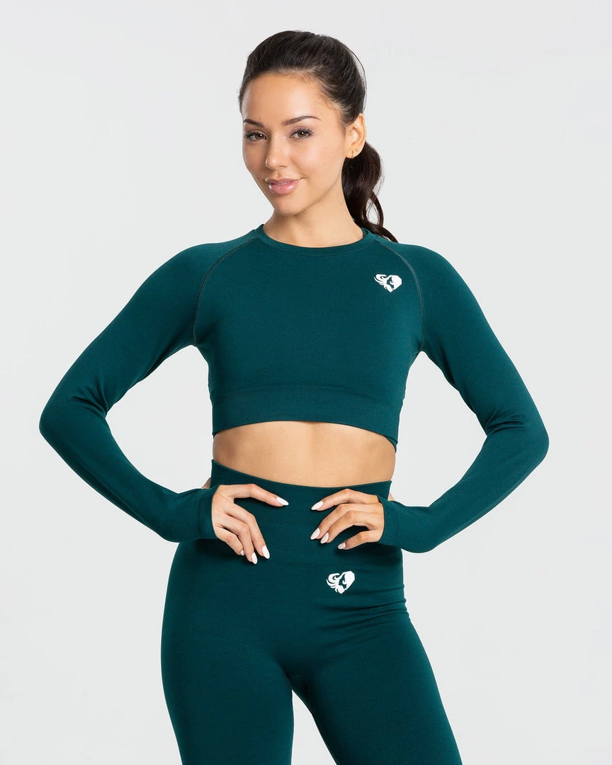 WOMEN’S BEST Move Seamless Long Sleeve Crop Top | Smaragd Green Solid