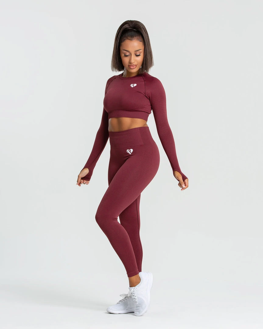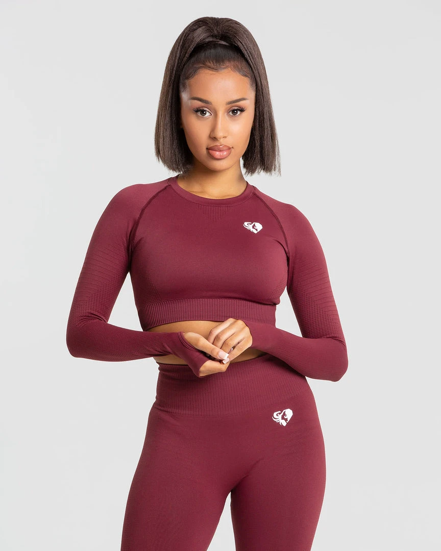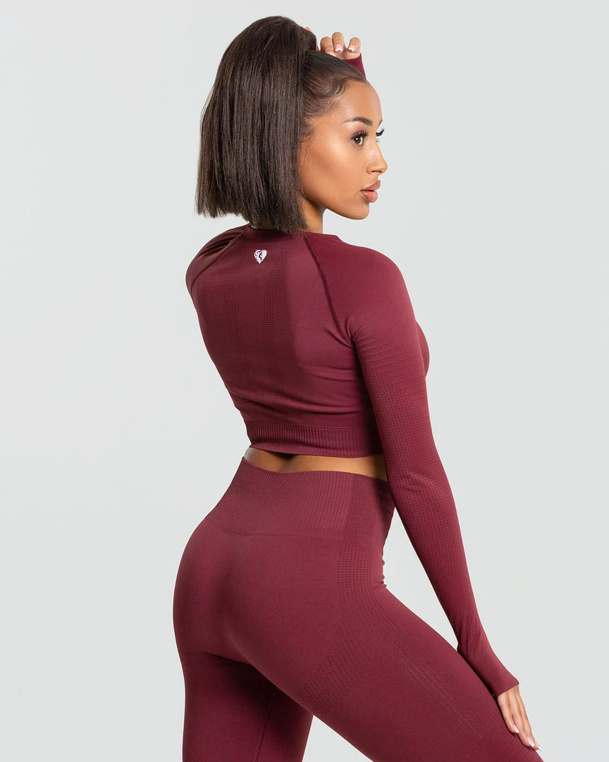 WOMEN’S BEST Power Seamless Long Sleeve Crop Top | Burgundy