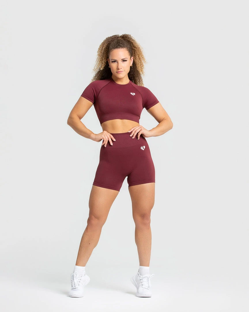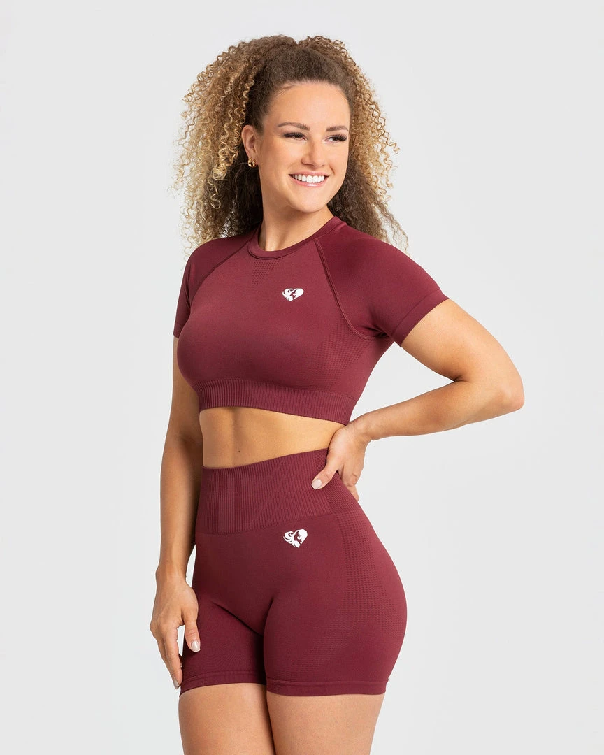 WOMEN’S BEST Power Seamless Short Sleeve Crop Top | Burgundy SPORTBEKLEIDUNG