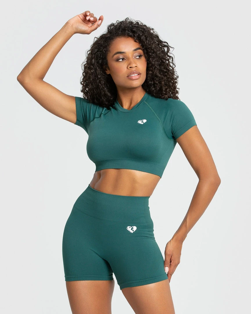 WOMEN’S BEST Power Seamless Short Sleeve Crop Top | Forest Green