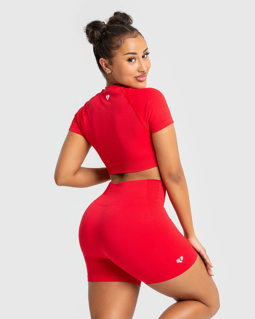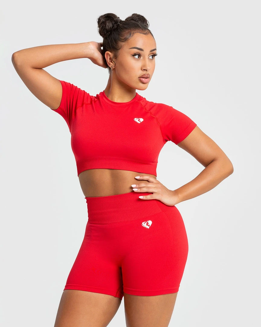 WOMEN’S BEST Power Seamless Short Sleeve Crop Top | Red