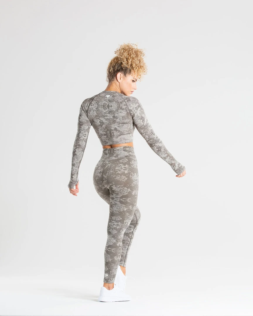 WOMEN’S BEST SPORTBEKLEIDUNG Camo Seamless Long Sleeve Crop Top | Green