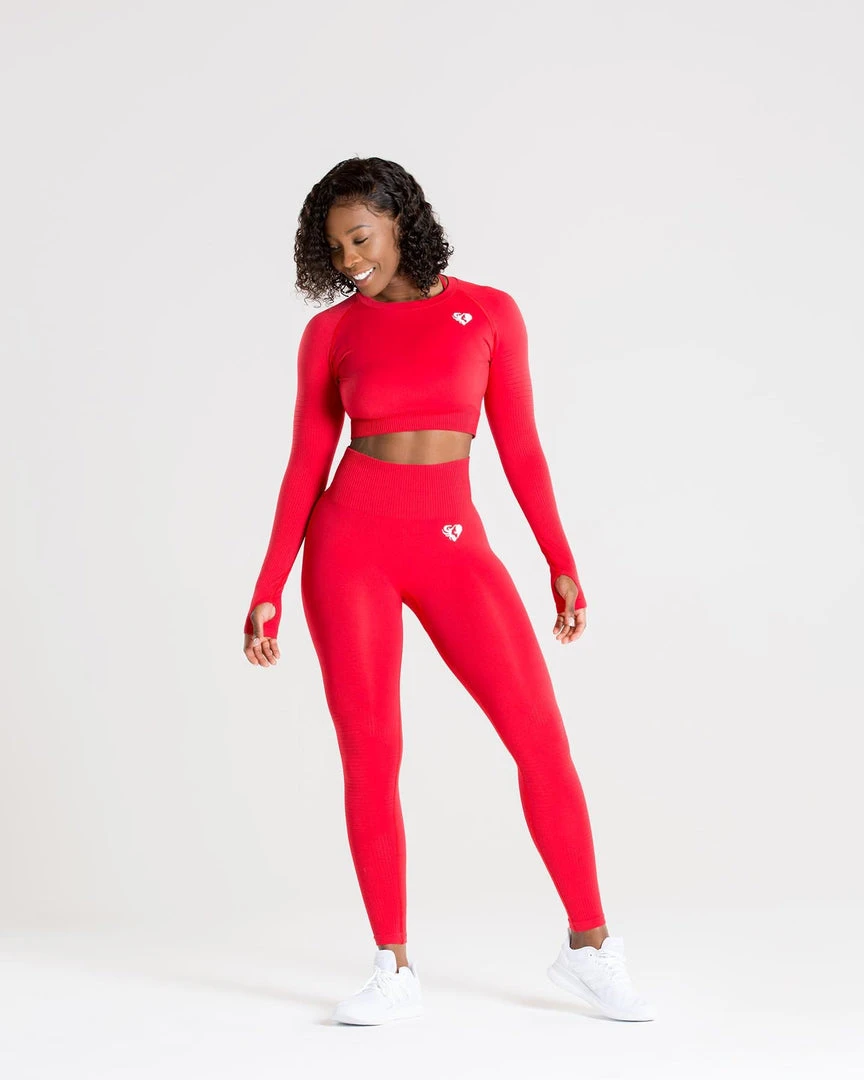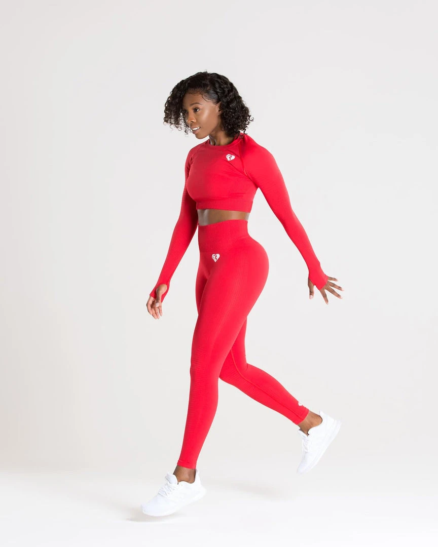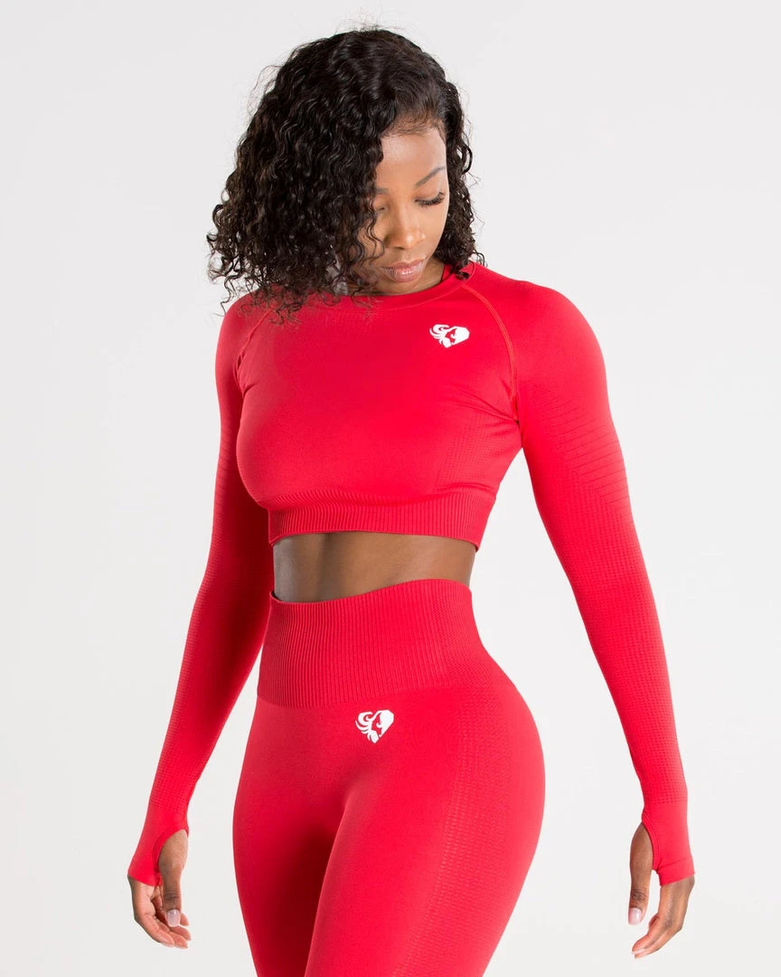 WOMEN’S BEST SPORTBEKLEIDUNG Power Seamless Long Sleeve Crop Top | Red