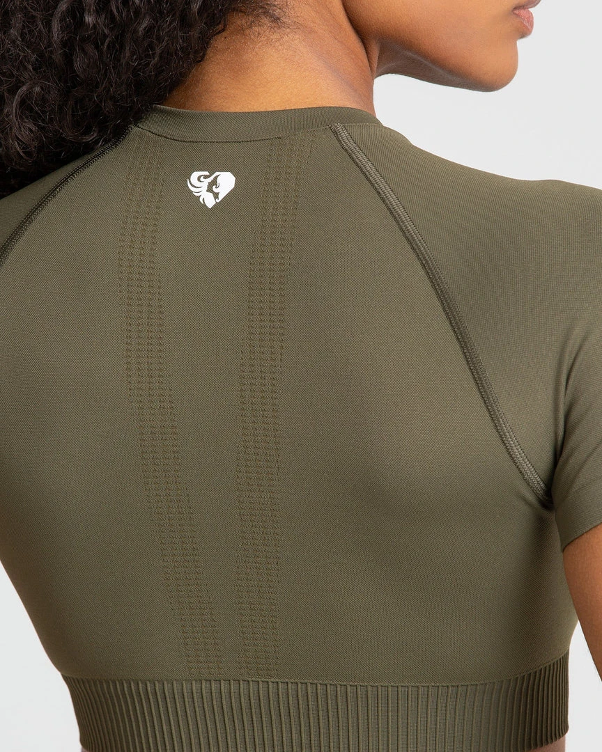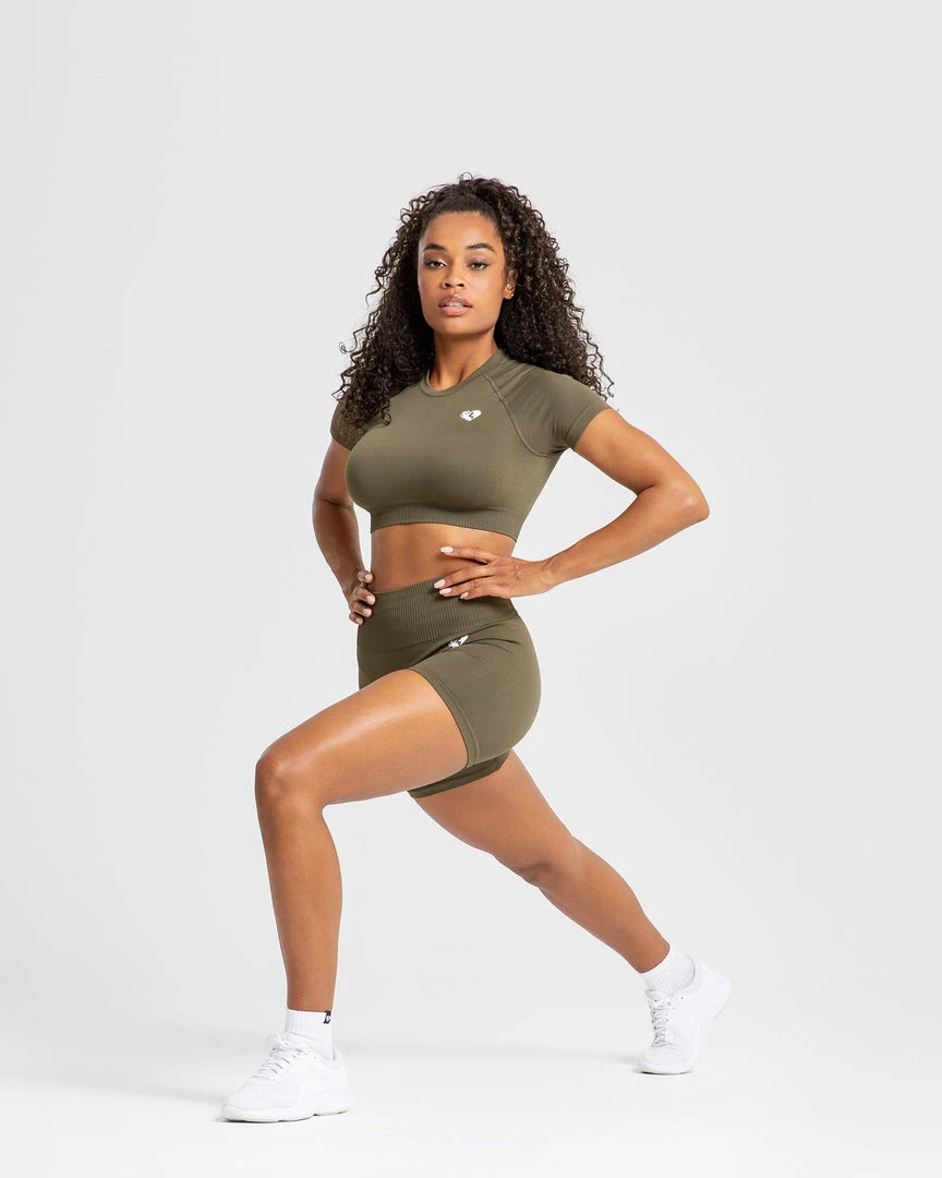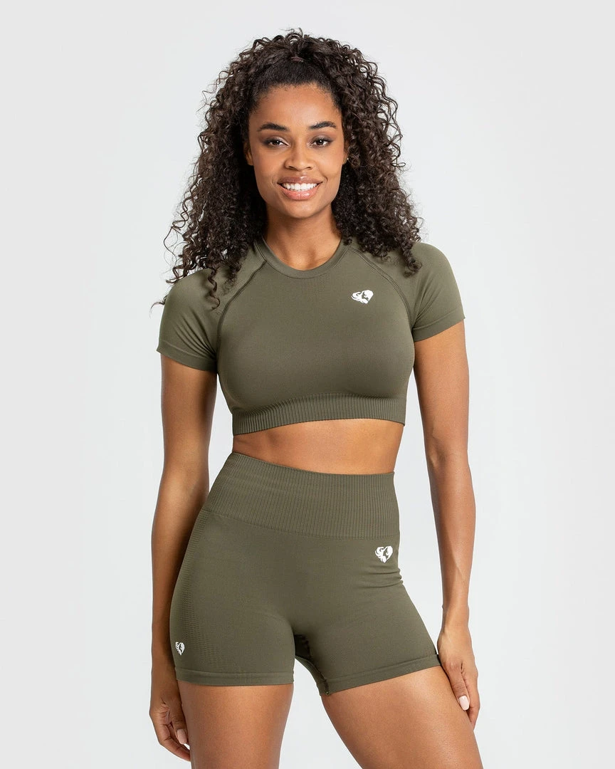 WOMEN’S BEST SPORTBEKLEIDUNG Power Seamless Short Sleeve Crop Top | Khaki